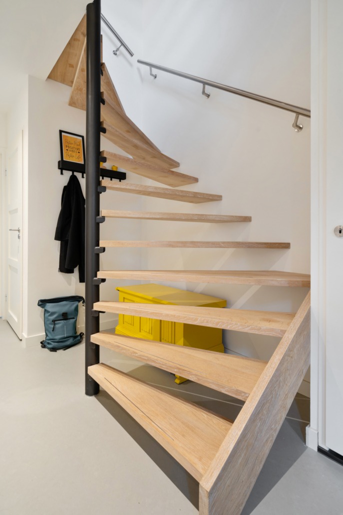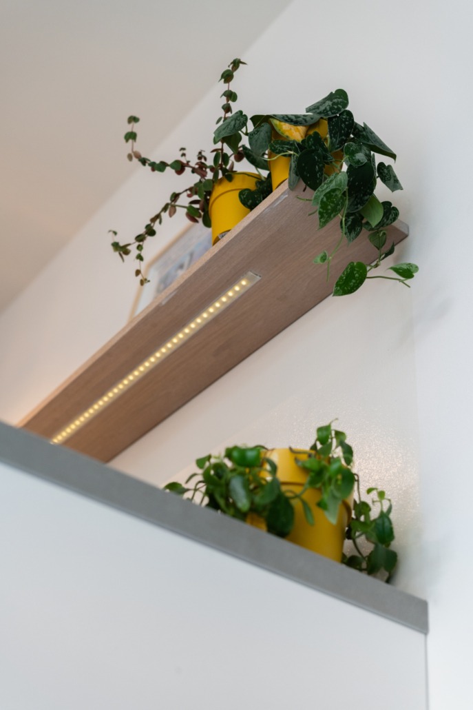 Inter Art heeft naast de keuken ook andere aspecten van het project ondersteund. “Ze namen ze veel uit handen”, aldus Masja. “Ze hebben onder andere een nieuwe trap van hout voor ons gemaakt en de wc ingericht. Ze hebben veel ontzorgd door de organisatie op zich te nemen. Dat werkte erg fijn.” Als Masja aan haar keuken denkt, dan voelt ze een gevoel van rust: “Het hele huis ademt een sfeer van lichtheid en ruimte. Vooral het licht vanuit de koepel boven de eettafel maakt ons echt blij. De hele ruimte is netjes en strak.”