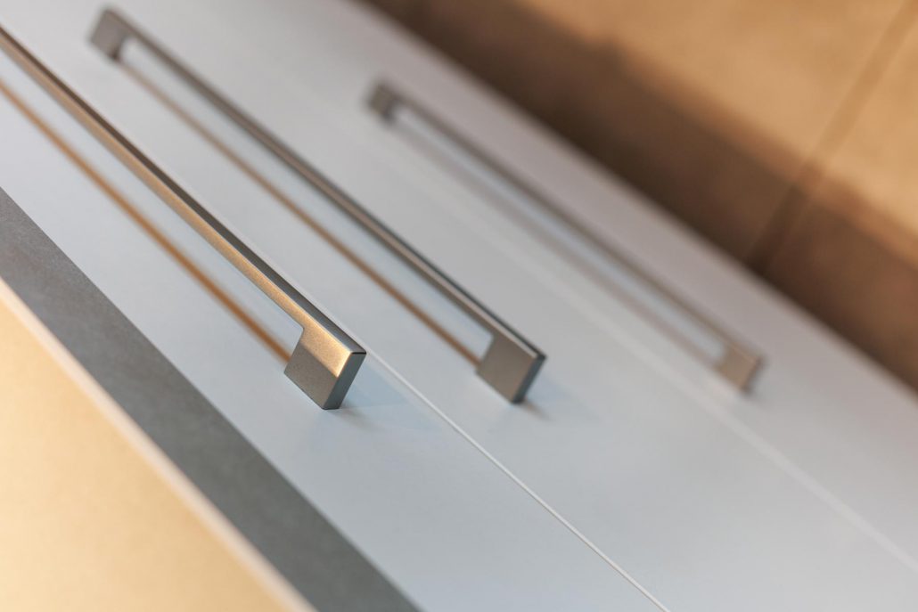 Jacqueline geniet dagelijks van de moderne, tijdloze keuken in wit met antracietgrijs. ‘Niet alleen heeft de keuken veel bergruimte en voldoende werkblad, maar de keuken is ook nog eens heel erg mooi. Ik vind het lijnenspel prachtig.’ De keuken past prima bij het interieur. ‘Onze meubels zijn eerlijk gezegd van alles wat, maar dan is het juist zo fijn dat de keuken zo strak is.’
