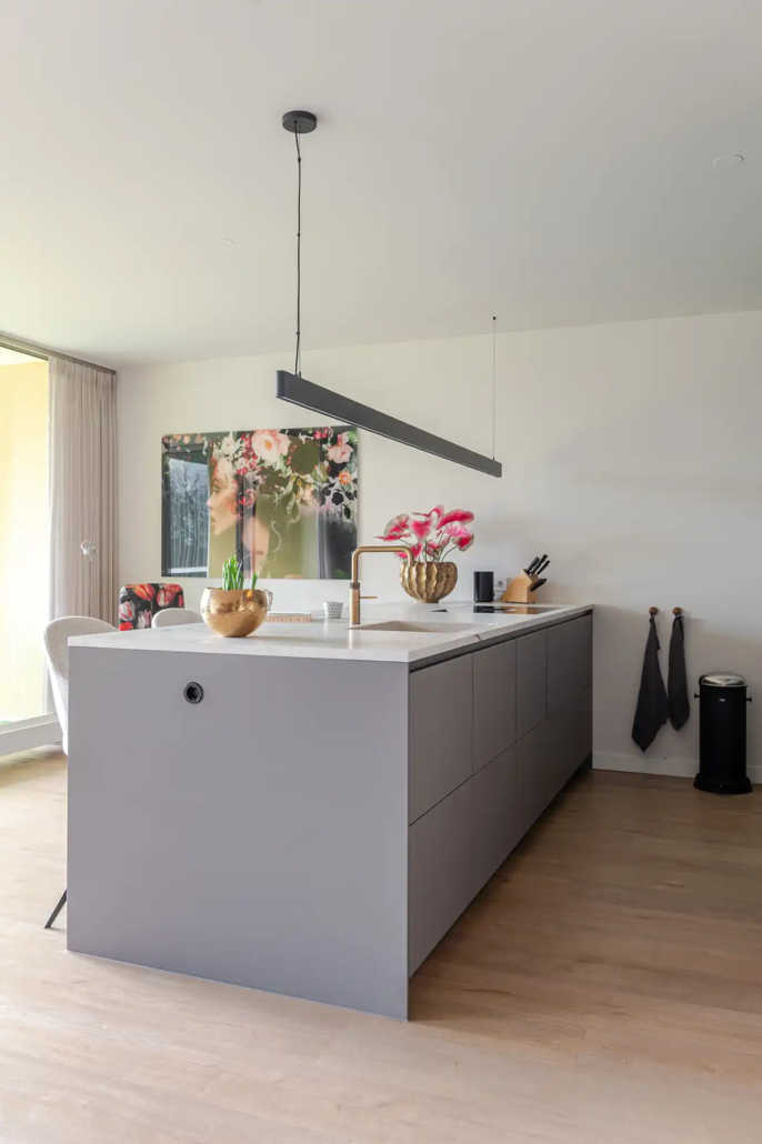 Een van de eerste grote veranderingen was de herindeling van het appartement. “We hebben een muur verplaatst, waardoor de woonkamer veel ruimer aanvoelt”, legt Henkjan uit. “We wisten meteen dat dit de juiste keuze was, want de meubels passen nu veel beter en de ruimte voelt veel lichter en opener aan. Dit hebben we samen met Gerhard besproken, die ons echt heeft geholpen om alles goed te laten passen.”
